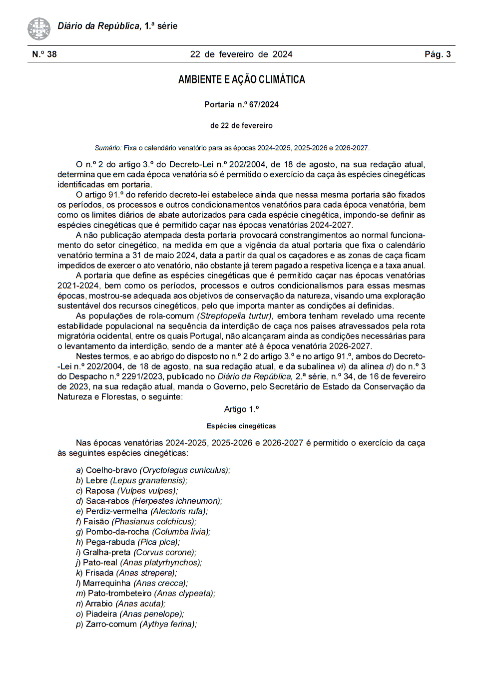 2024 0222 Portaria 67 Calendário Venatório 2024-2027 1