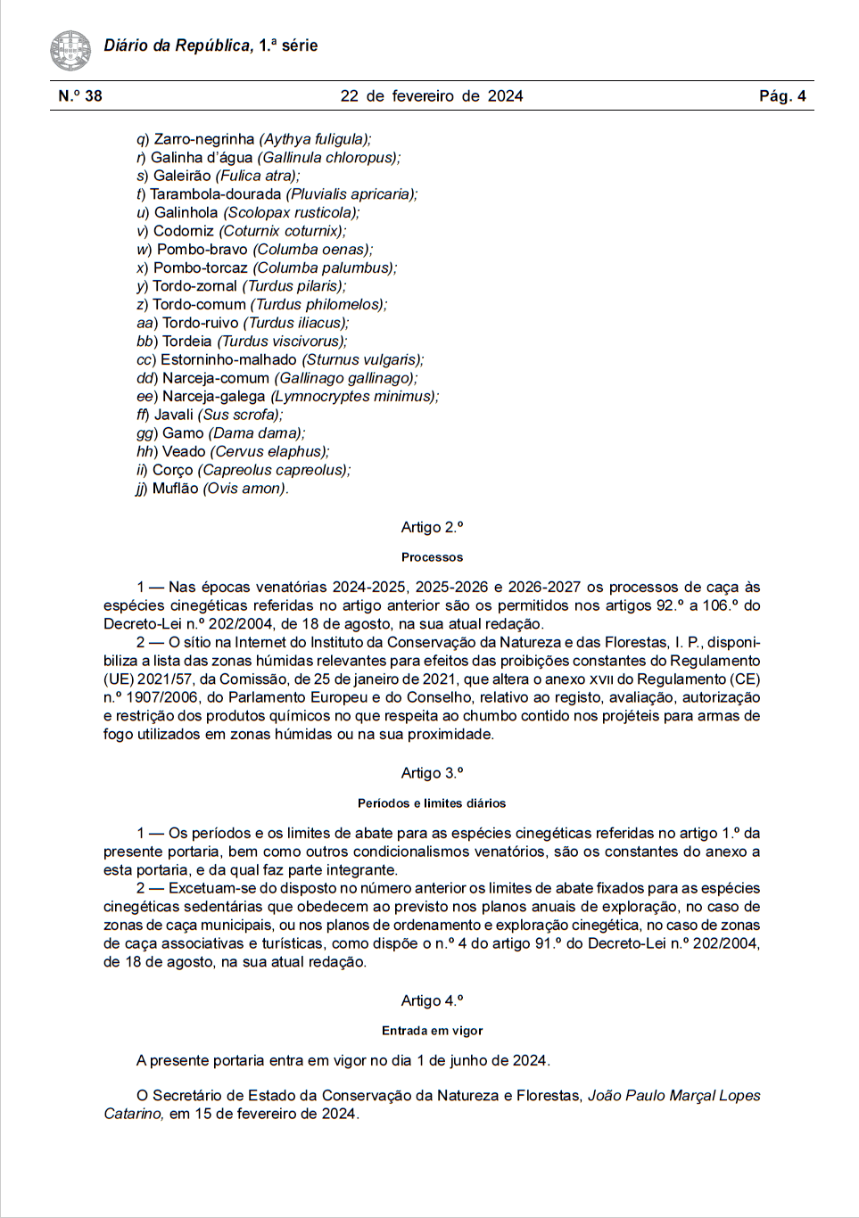 2024 0222 Portaria 67 Calendário Venatório 2024-2027 2