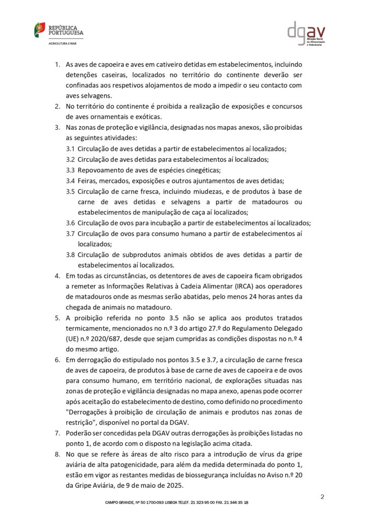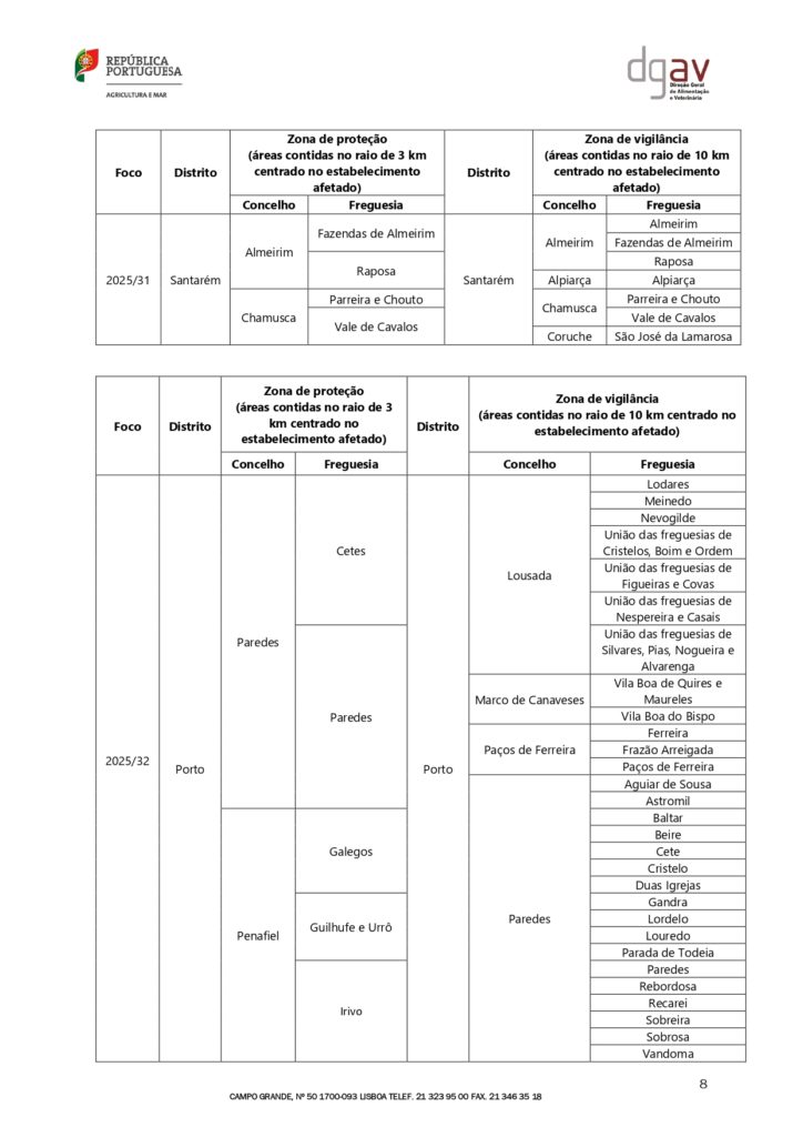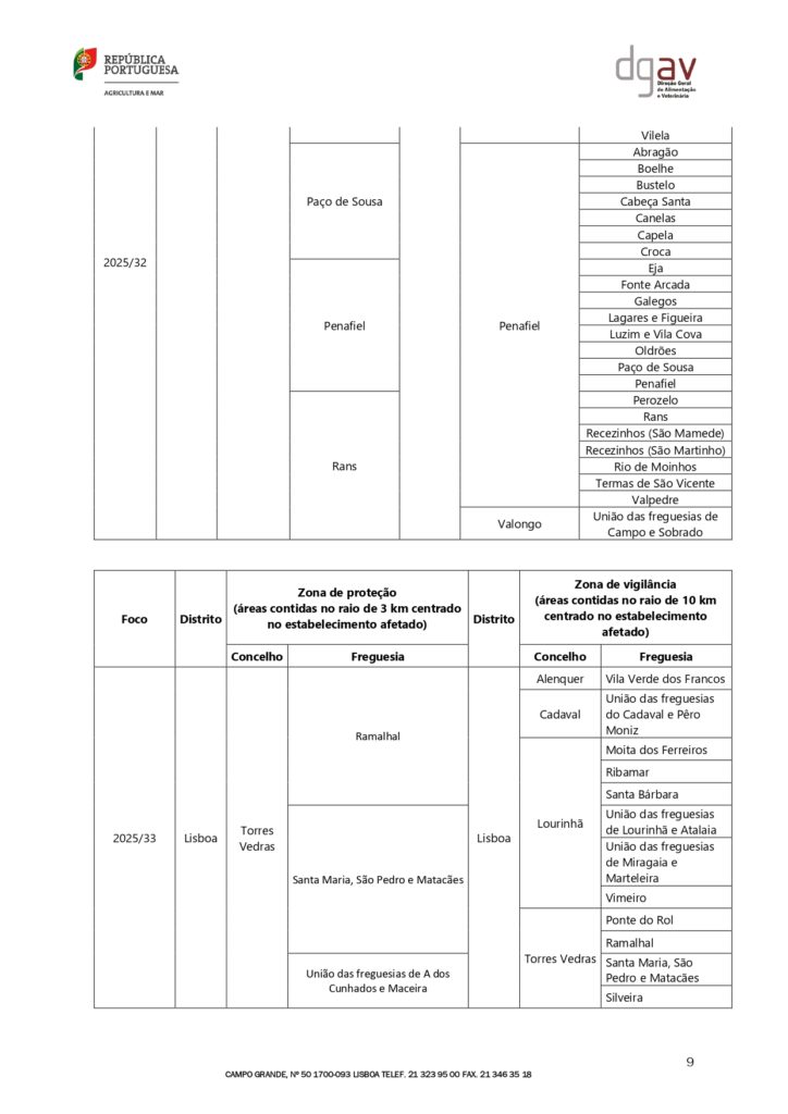 Edital nº 37 – Deteção de foco de infeção por vírus da gripe aviária de alta patogenicidade – Aves de capoeira – Ramalhal, Torres Vedras – Foco 2025/33
