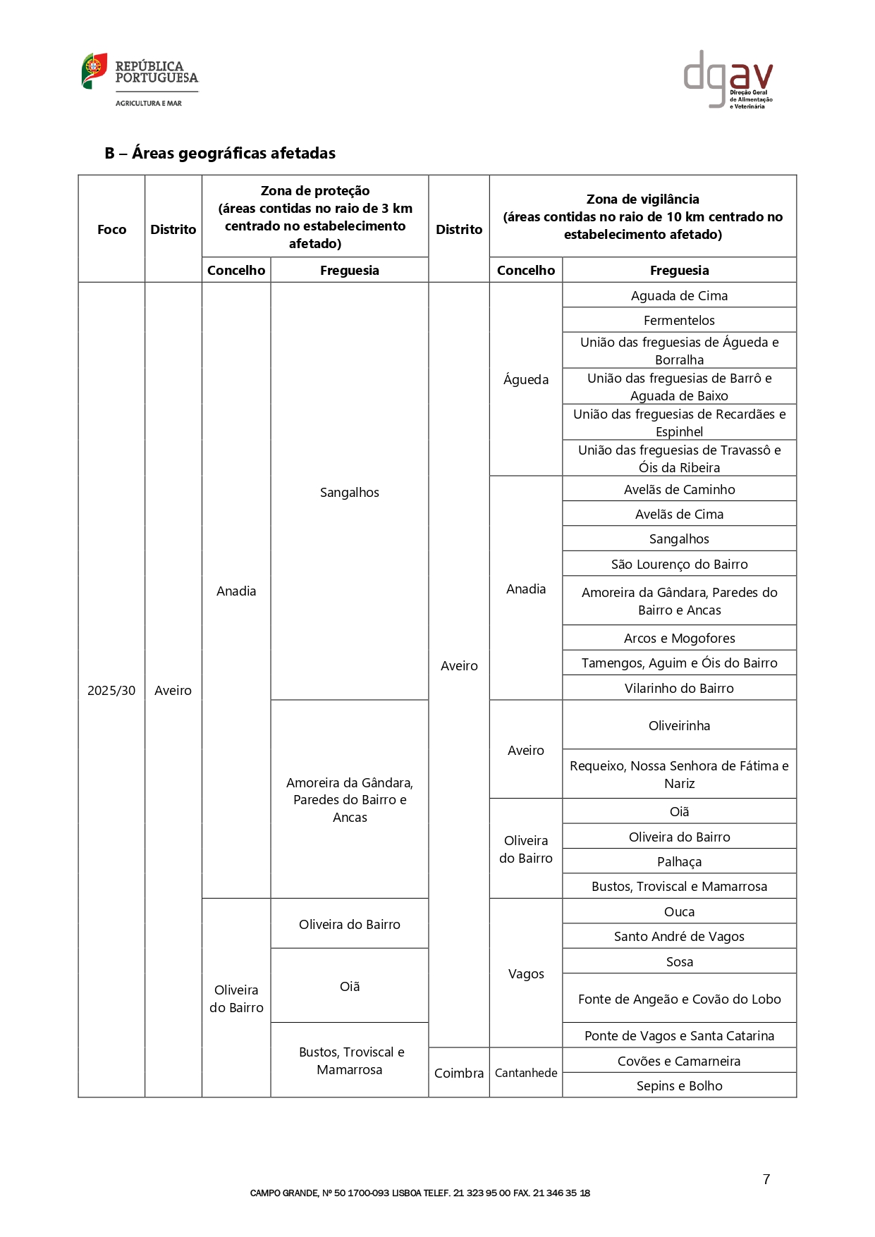 Edital nº 37 – Deteção de foco de infeção por vírus da gripe aviária de alta patogenicidade – Aves de capoeira – Ramalhal, Torres Vedras – Foco 2025/33