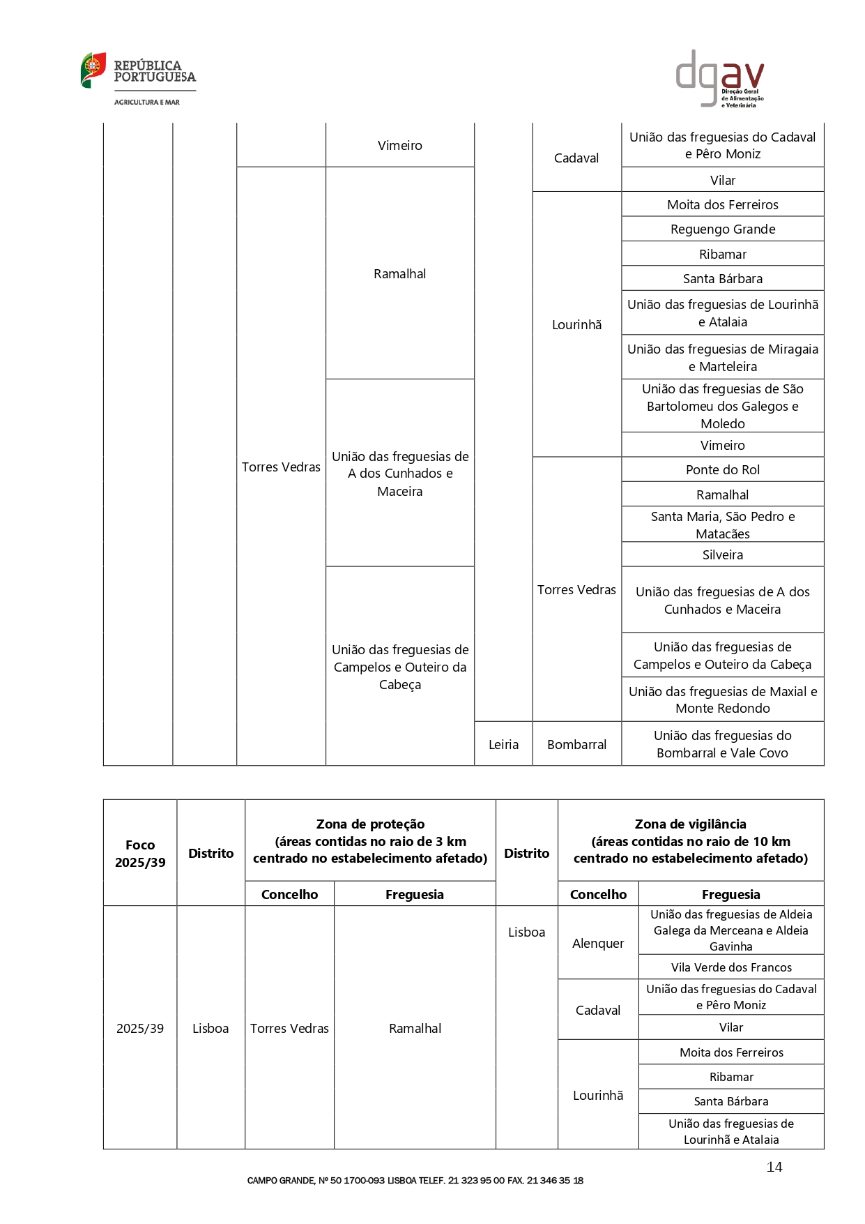 Deteção de focos de infeção por vírus da gripe aviária do subtipo H5N1 – Foco 2025/40