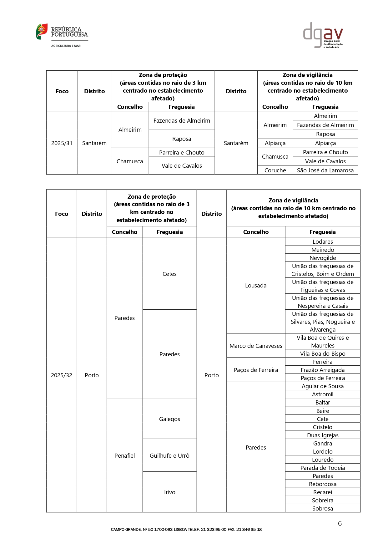 EDITAL Nº36 – Deteção de foco de infeção por vírus da gripe aviária de alta patogenicidade – Aves em cativeiro – Irivo, Penafiel – Foco 2025/32/GAAP