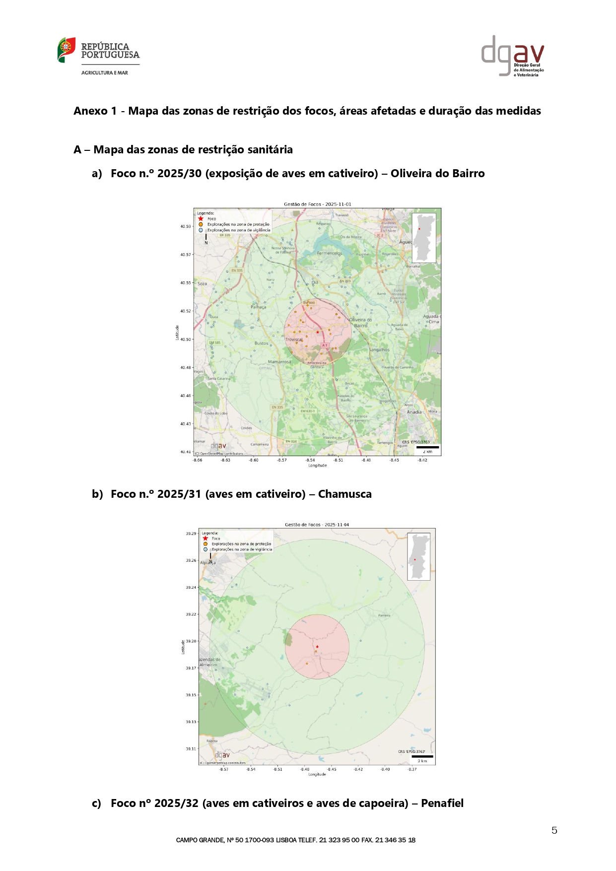 Edital nº38 da DGAV- Confirmação de vários focos de infeção por vírus da gripe aviária de alta patogenicidade (GAAP) do subtipo H5N1