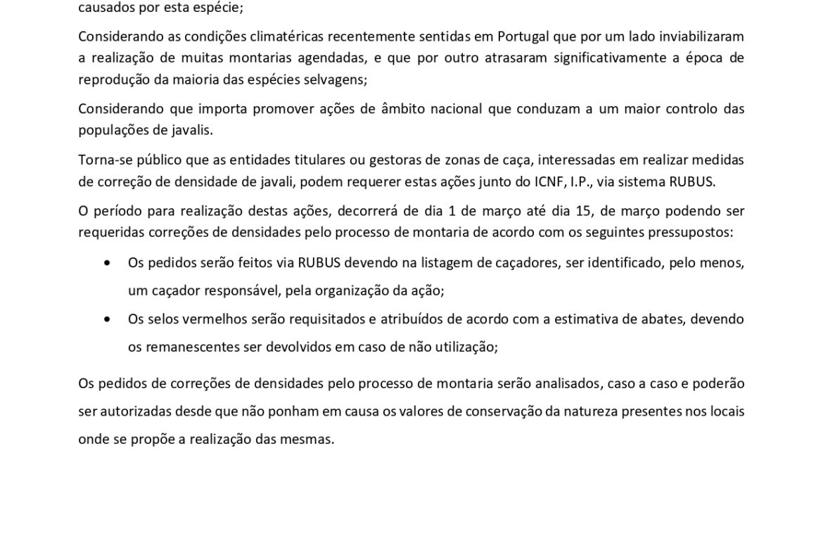 CORREÇÃO EXTRAORDINÁRIA DA DENSIDADE DE JAVALIS